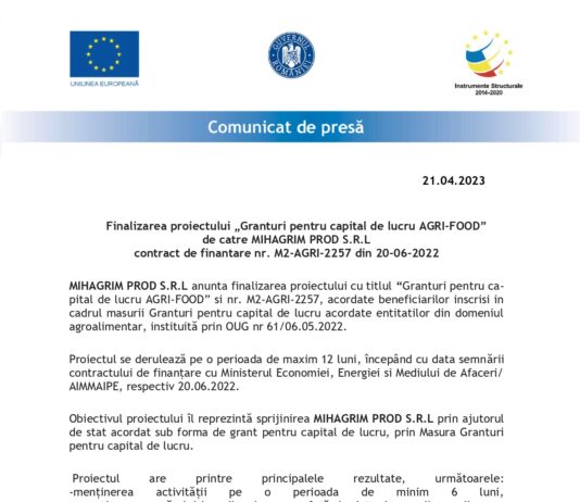 Anunt incepere proiect Granturi pentru Capital de lucru pentru ROLCRIS IMPEX S.R.L.