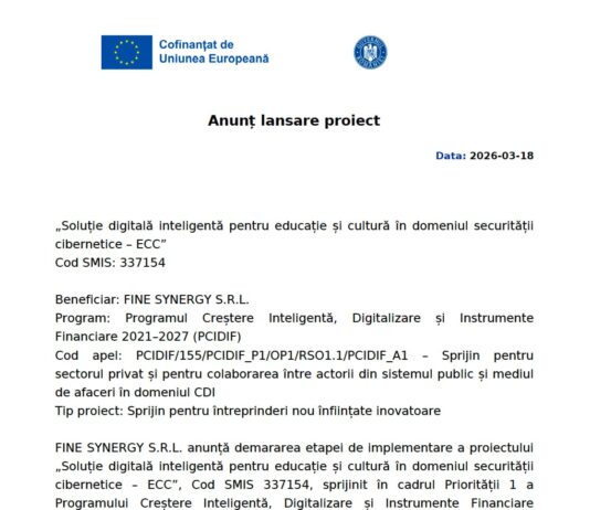 Anunt lansare proiect: Soluție digitală inteligentă pentru educație și cultură în domeniul securității cibernetice – ECC